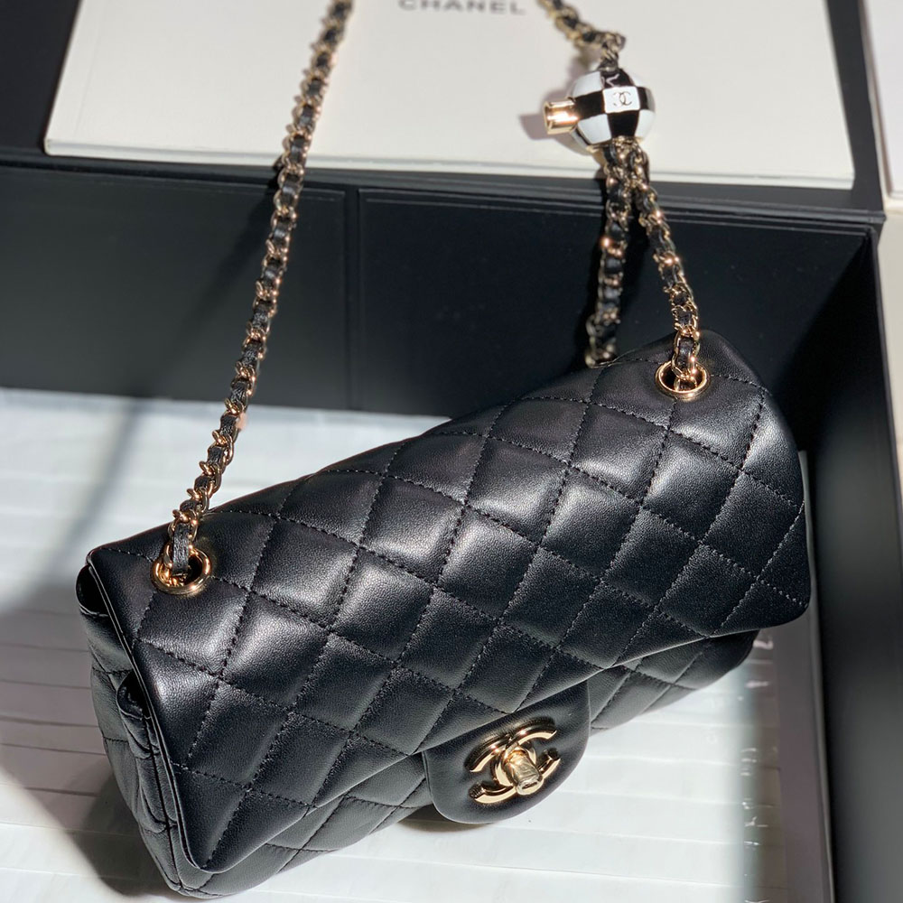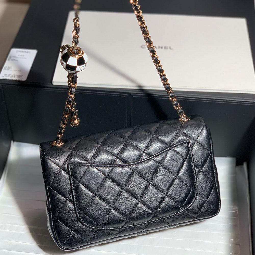 Chanel Quilted Enamel CC Pearl Crush Mini Flap Black(Replica)