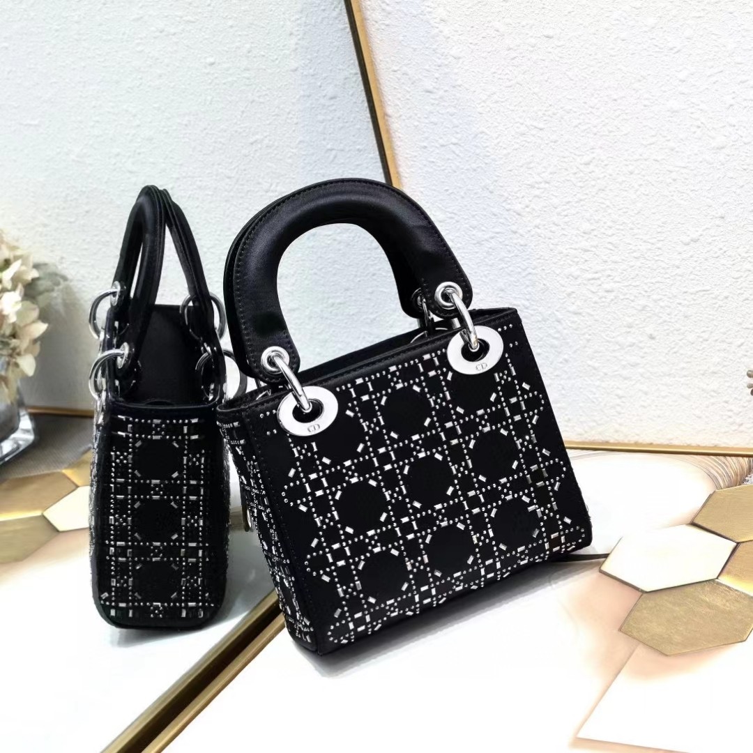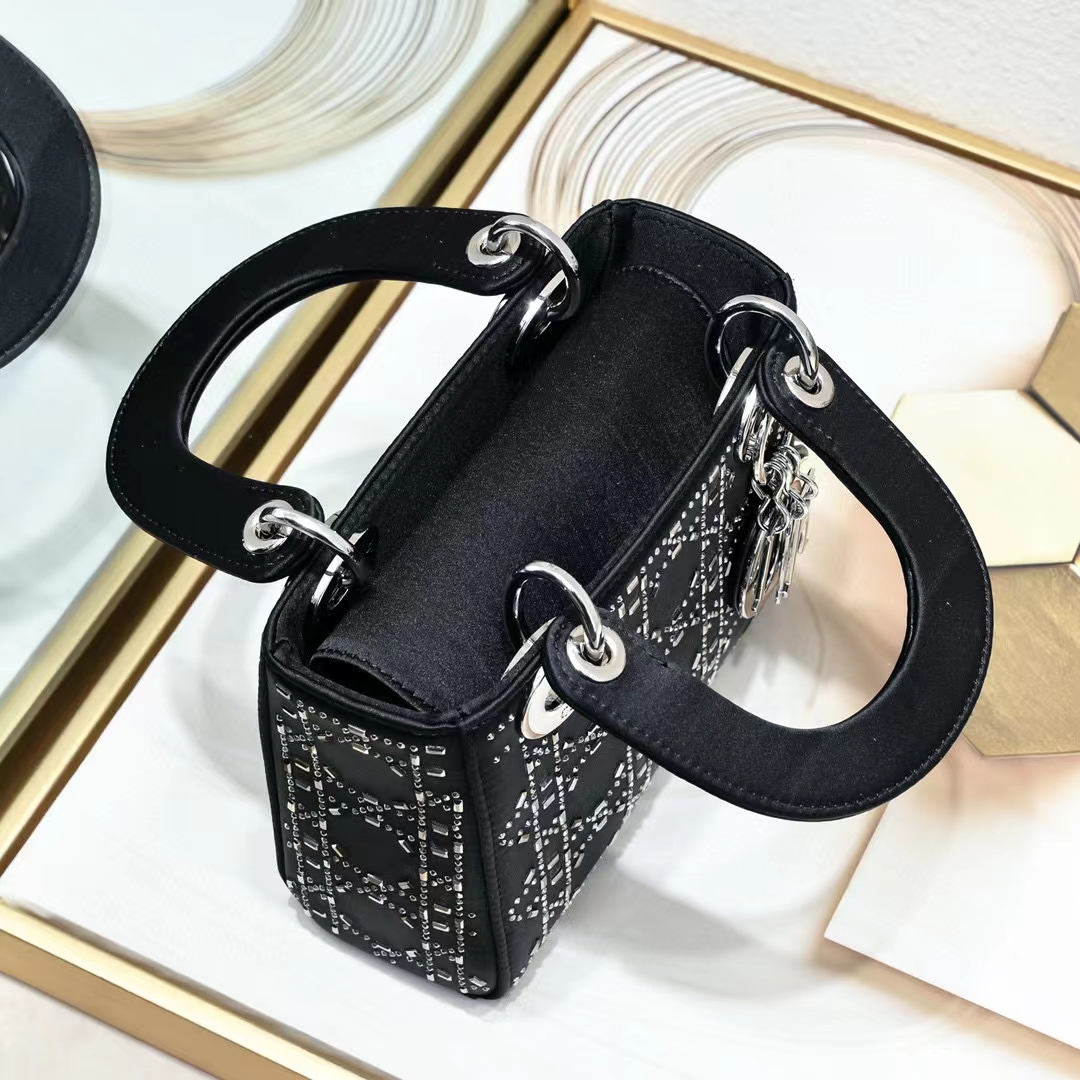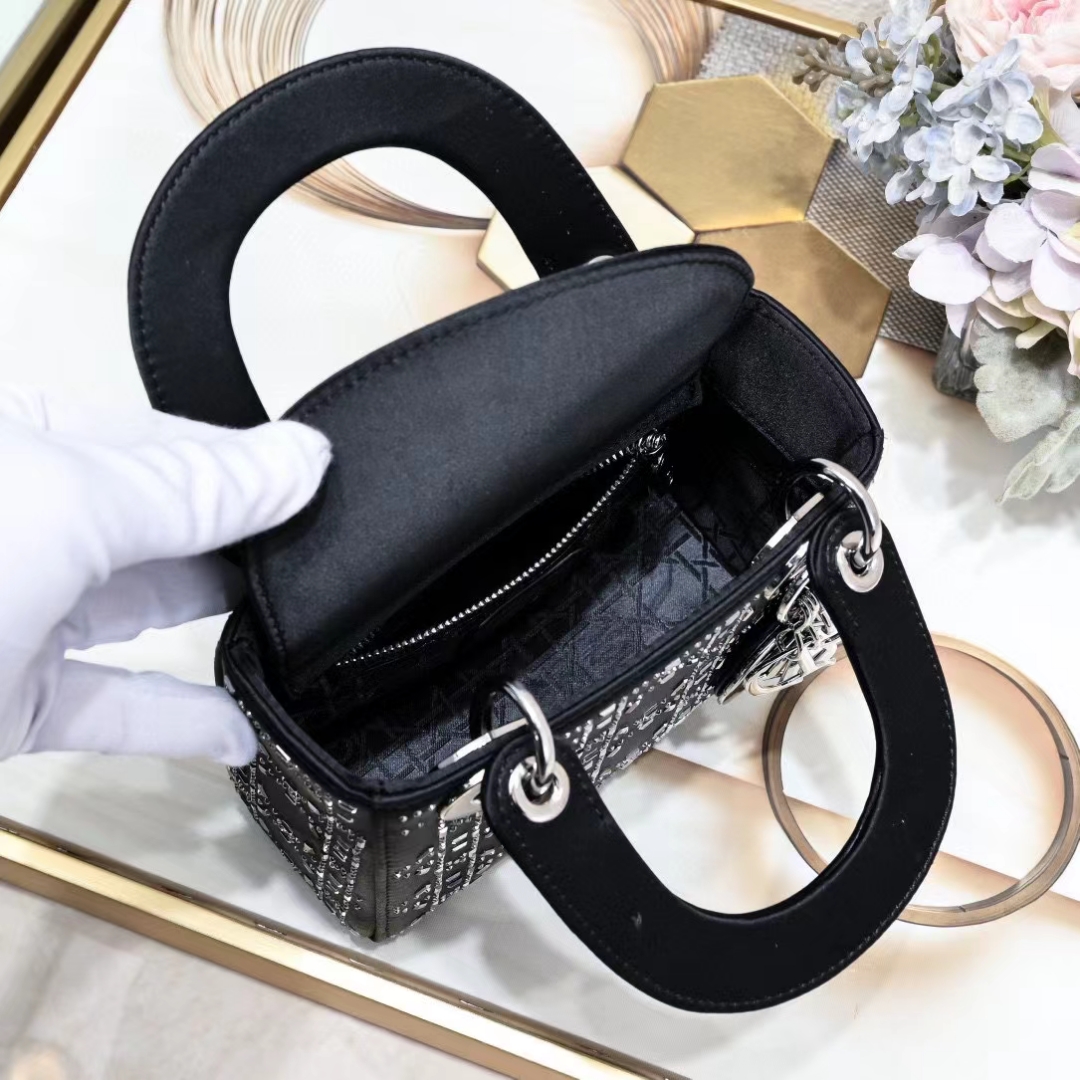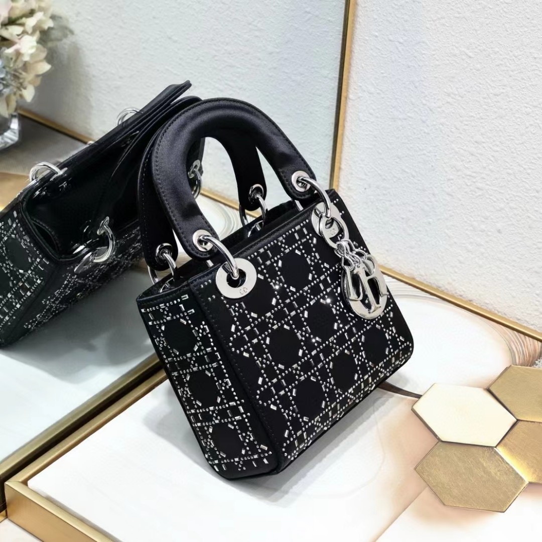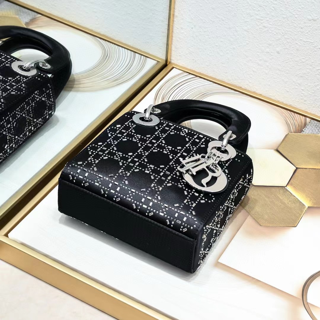 This Lady Dior bag epitomizes Dior's deep vision of elegance and beauty. Its chic and elegant design is timeless. Crafted from black satin. it is embellished with crystals for a sophisticated evening look. It is embellished with a metal-coated D.I.O.R. charm. adding a touch of agility to the exquisite silhouette. The mini version. with a detachable satin spaghetti strap. can be carried by hand or across the body. making it an ideal companion for evening wear.Removable and adjustable spaghetti strapInterior zipper pocketIncludes dust bagMade in ItalyDue to technical limitations. product improvements or production batches. the information on the website may have color differences. size errors or other details. The product images displayed on the website may not be consistent with the actual appearance of the product. If you have any related questions. please contact us