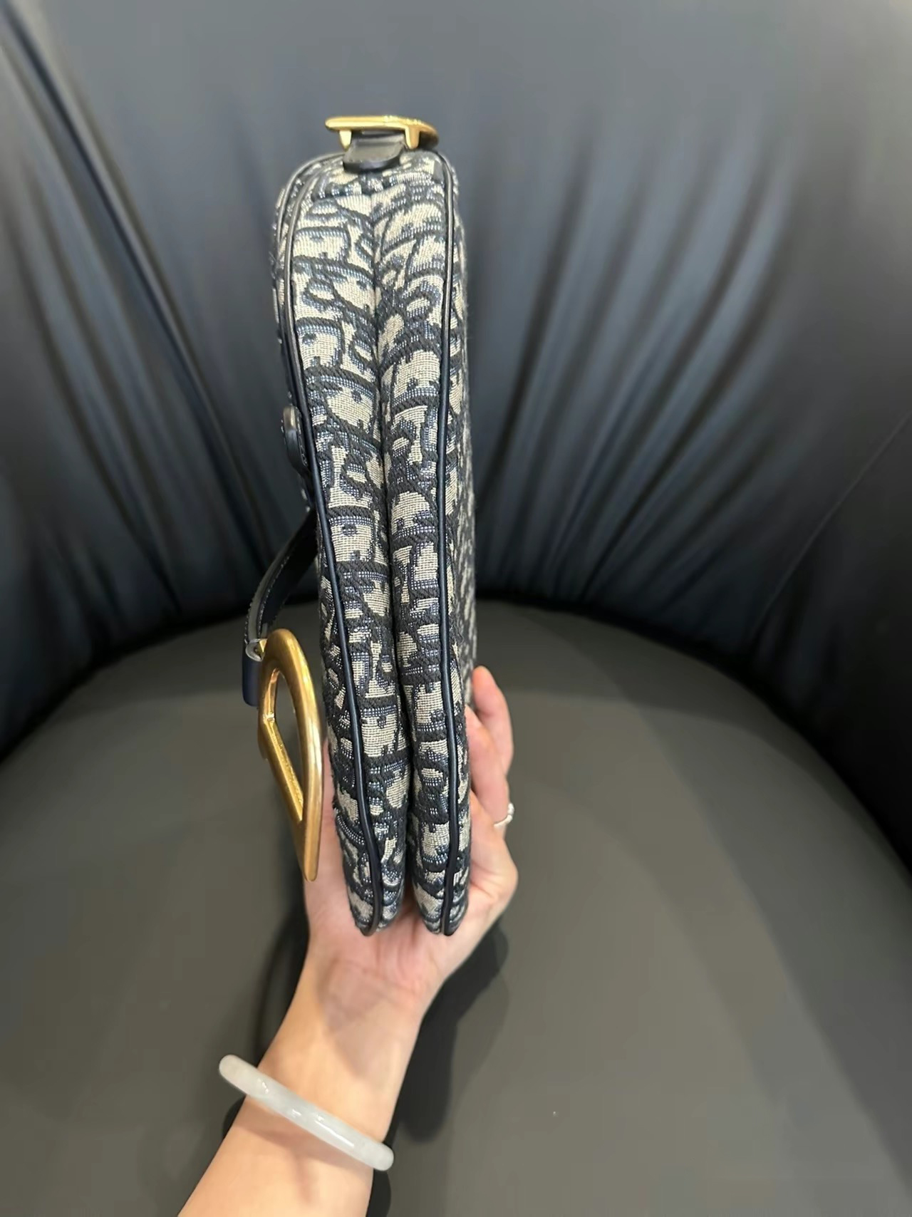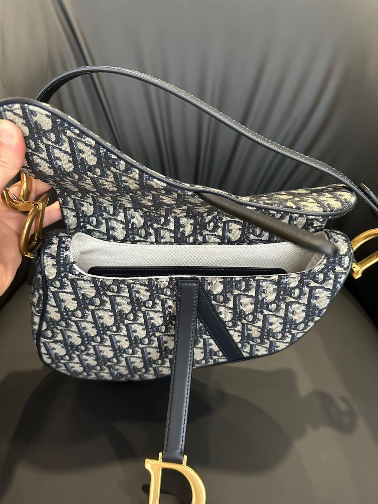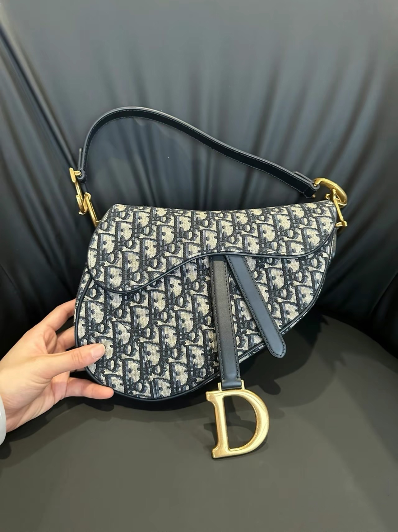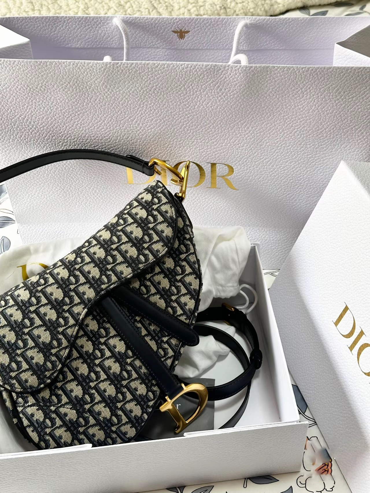 This classic saddle bag is a subtle update by Maria Grazia Chiuri. Crafted in blue Oblique print fabric. the saddle flap features a stirrup D-shaped charm strap and magnetic drawstring. a classic design. and metal CD logos with antique gold finish on both sides of the handles. Mini version with adjustable and removable spaghetti strap for hand. shoulder or crossbody wear.Stirrup D-shaped charm strap and magnetic drawstringCD logo on the handleRemovable and adjustable spaghetti strapRear pocketDust bag includedDue to technical limitations. product improvements or production batches. the information on the website may have color differences. size errors or other details. The product images displayed on the website may not be consistent with the actual appearance of the product. If you have any related questions. please contact customer service