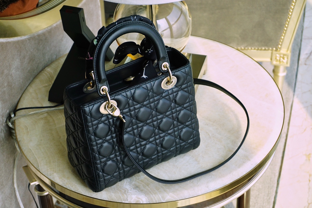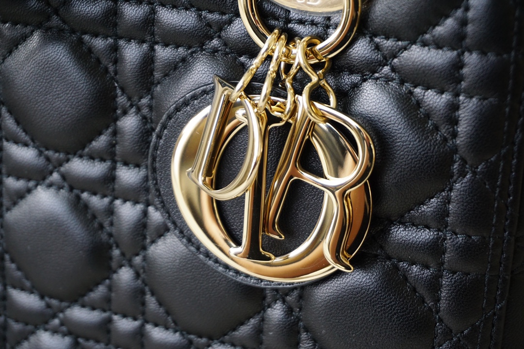 An iconic piece of the House. the Lady Dior handbag brings together the classic elements of Dior leather goods: classic Cannage rattan check stitching embellished with lambskin. rounded handles and a D.i.o.r charm. This layered piece is a symbol of couture sophistication and elegance. The handbag reinterprets the classic with a charm. wide shoulder strap and soft structure for a more stylish and distinguished look.  We have perfectly reproduced this outstanding handbag in limited quantities. so buy now if you like it!