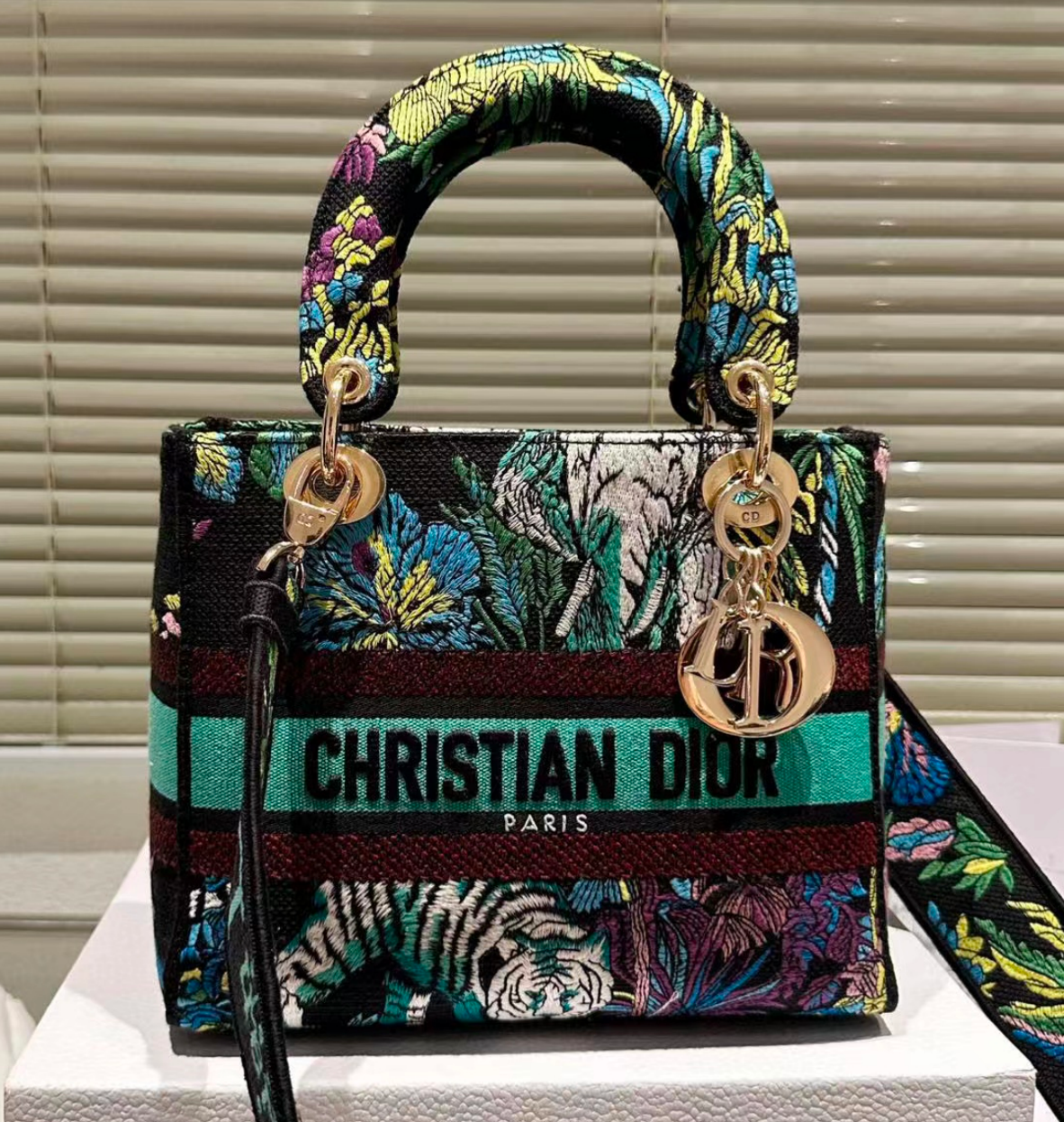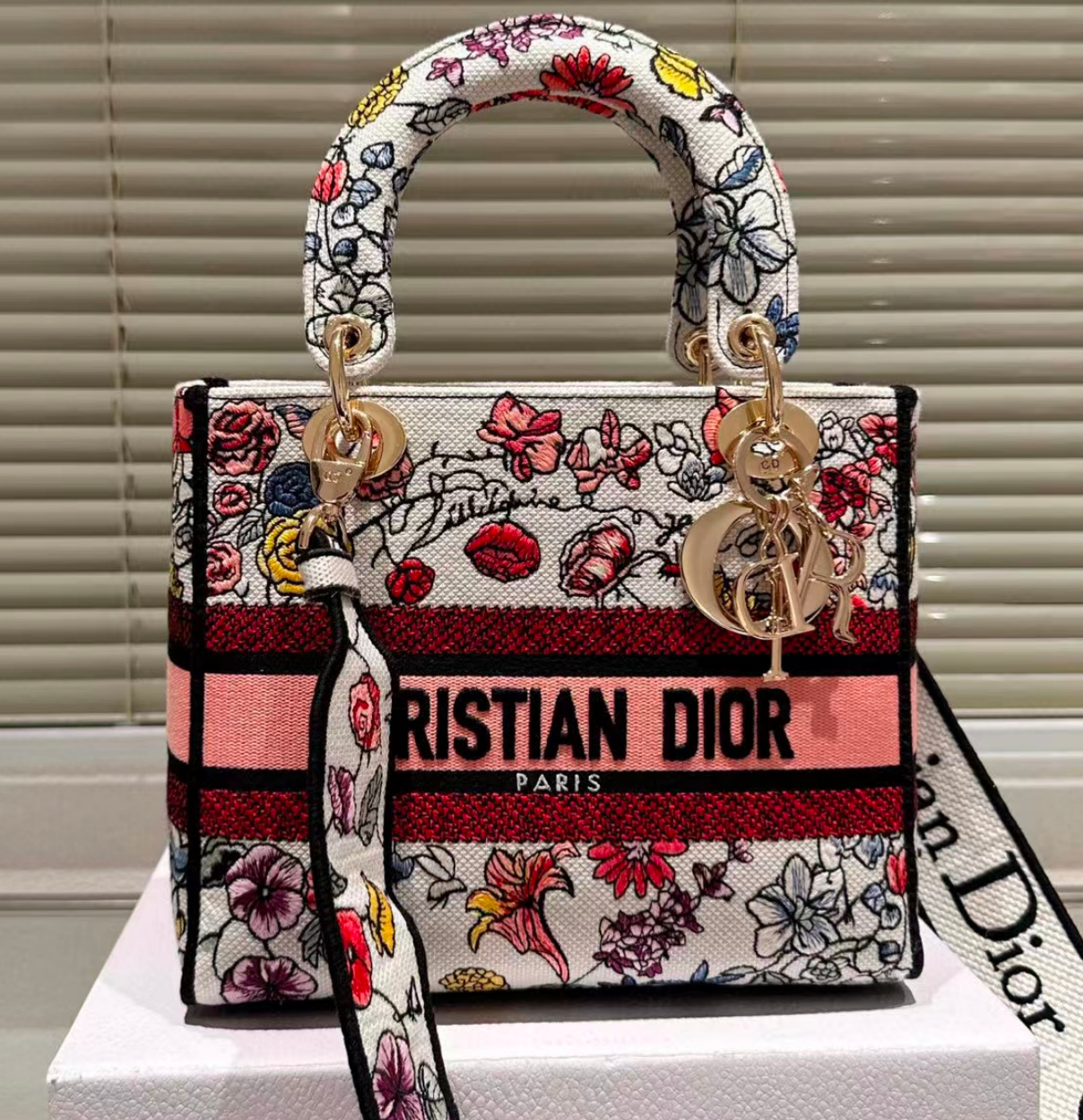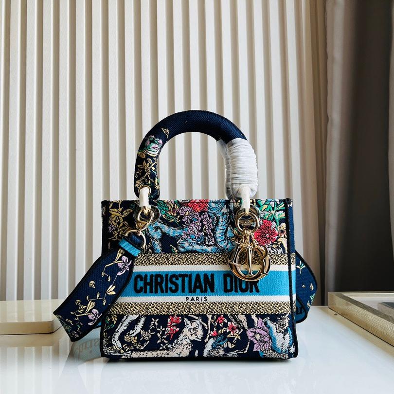 Dior The LADY D-LITE Bag Blue Dior Palms Embroidery M0565OREU_M928