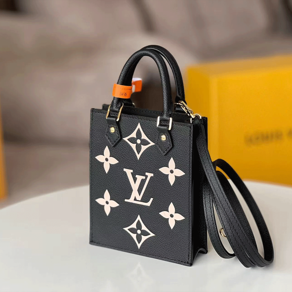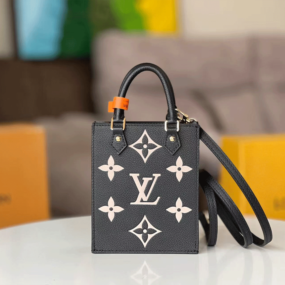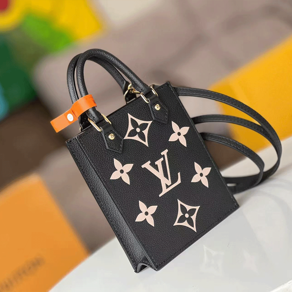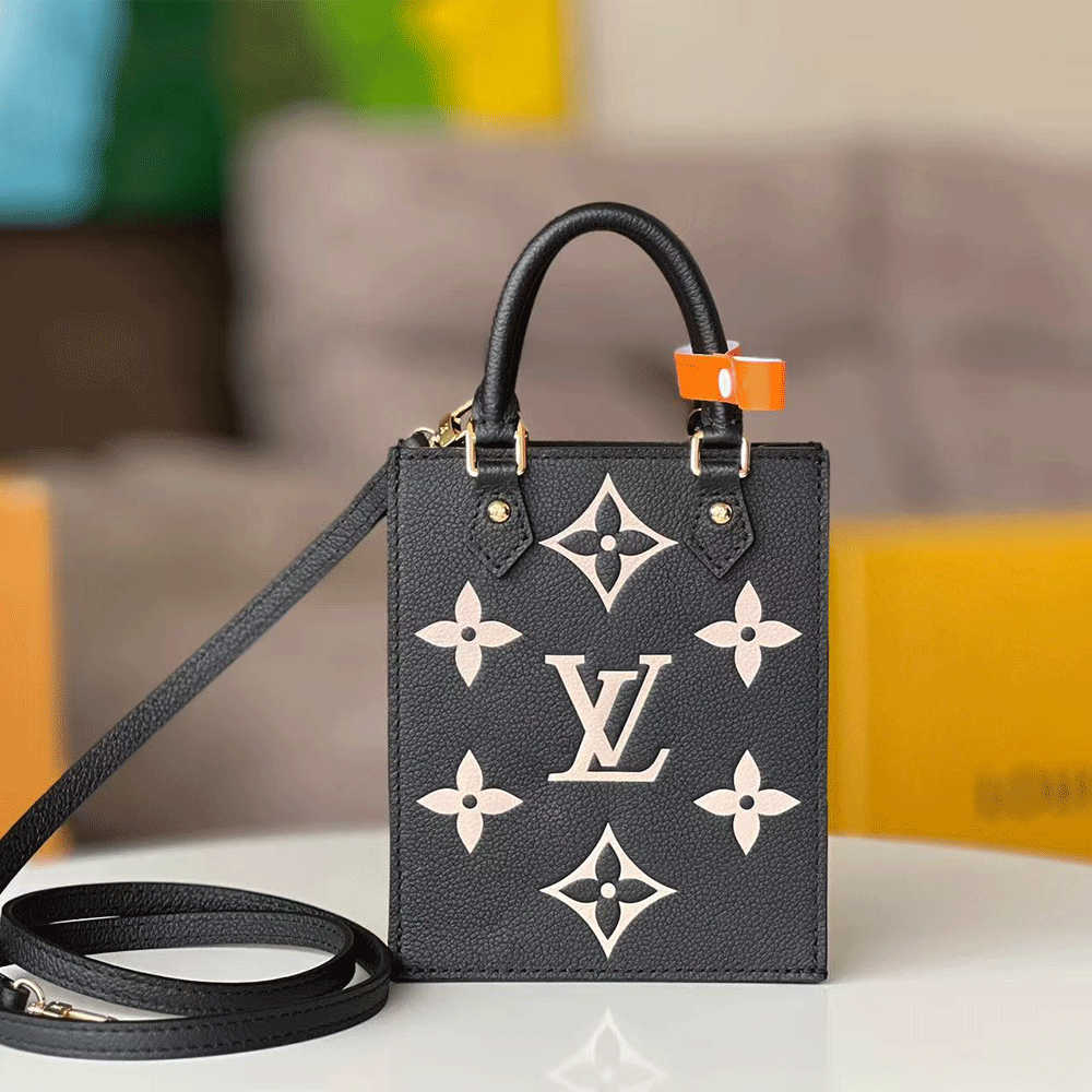 Louis Vuitton Monogram Empreinte Petite Sac Plat Handbag Black Beige(Replica)